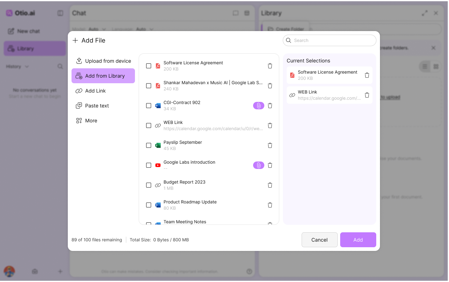 Otio is an AI-powered knowledge library that lets users upload files, organise them, and chat with their documents. I led the end-to-end design of Otio V2 project to improve subscription conversion and reduce churn, using a UX audit, Hotjar/analytics insights, user surveys, competitor research, and team workshops to prioritise and iterate on a clearer, more intuitive experience.